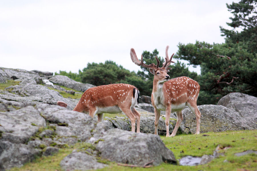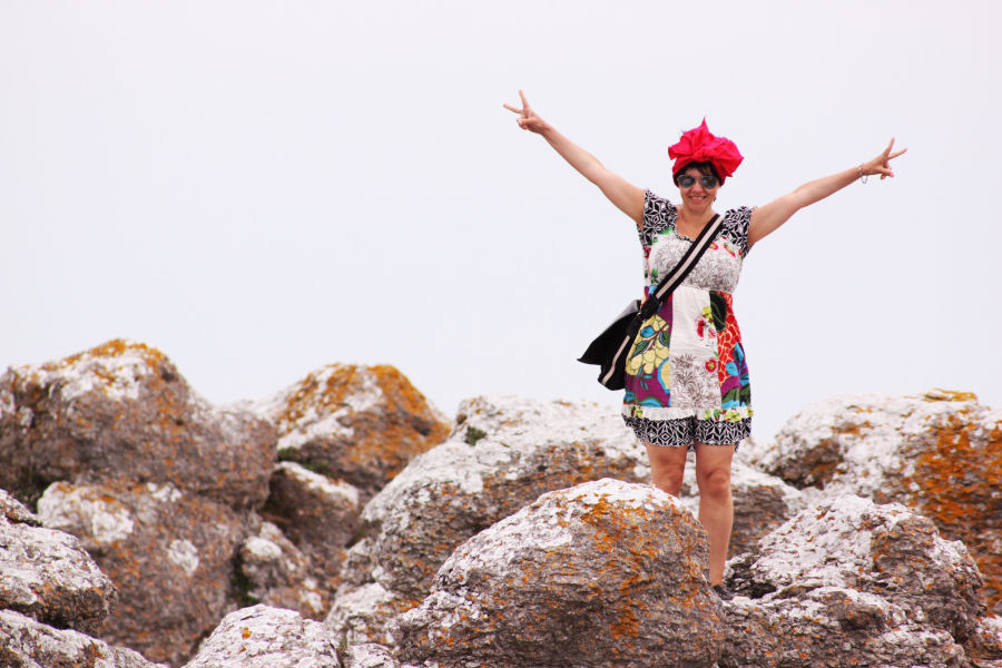 Mamma ger peacetecknet bland raukarna påGotland. |