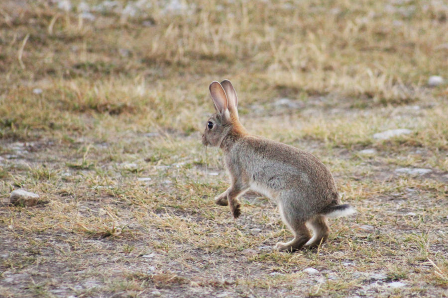 En liten kanin, eller hare. Som skuttade över gräsmattan på campingen strax utanför Visby. |