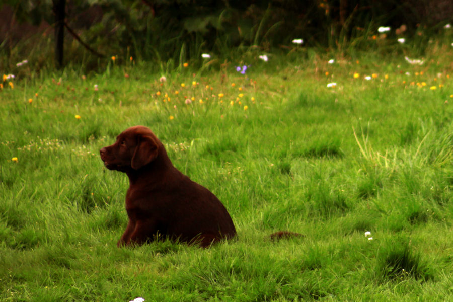 En liten valp som sprang runt och lekte på en hundrastningsplats i Majorna. |