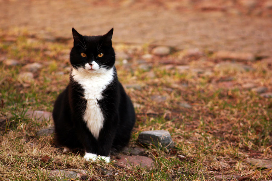 Min katt Lucia ger mig väldens blick när jag försöker ta kort på henne på gården. |