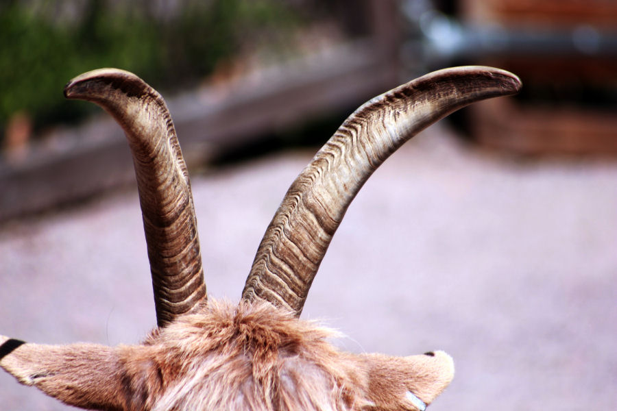En stor bock med sina två kraftigta horn på barnens zoo i Slottskogen. |